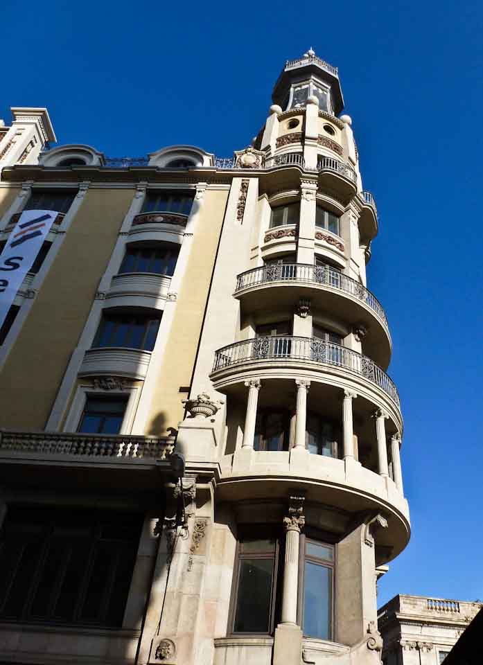 in a nice hotel in the shopping district of Barcelona, but it is Sunday, so the